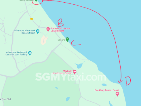 It is only a 5-minute walk from the beach to Westin Desaru Resort. You can walk to the right hand side on the beach to Westin Resort as shown in below image.